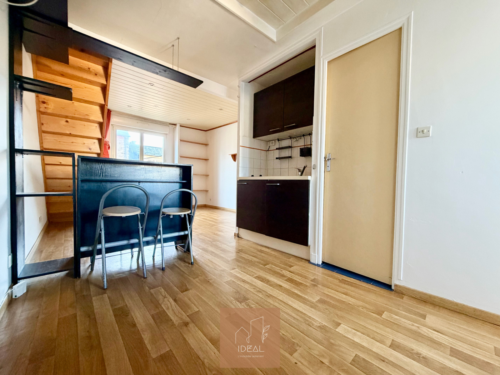 Il se compose au premier niveau d’une entrée, d’un WC indépendant, d’un agréable salon-séjour avec cuisine ouverte, ainsi que d’une salle d’eau.